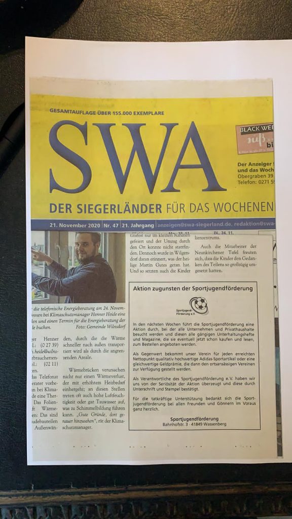 — Aktuell sind wir im Lahn-Dill-Kreis, Mayen-Koblenz und Kreis Siegen aktiv und unterstützen hier die Jugend- und Amateursportvereine —